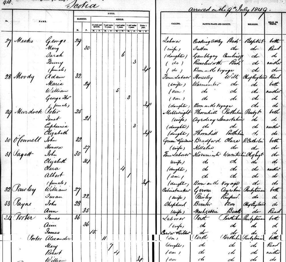 James and Ann Porter migrated with 5 children,arriving