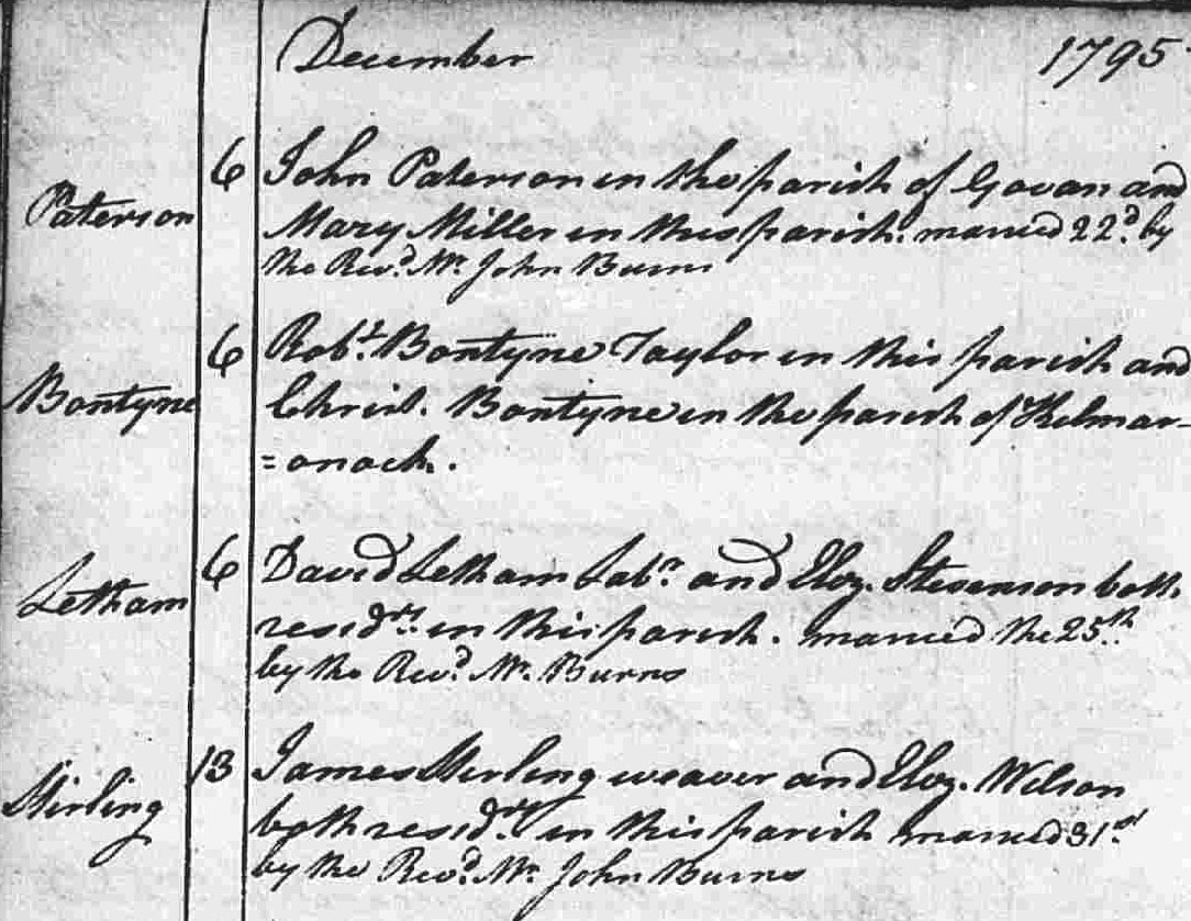 Wedding Certificate James (John) Stirling (b c. 1740) and Elizabeth Wilson (b c.1750)