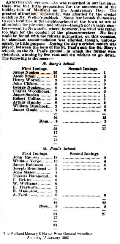Australia on the barque ‘Slains Castle’. En route another son – Thomas Slains Castle Noakes was born.They settled in west Maitland NSW, and in 1848 another son – George Walter– was born. |
